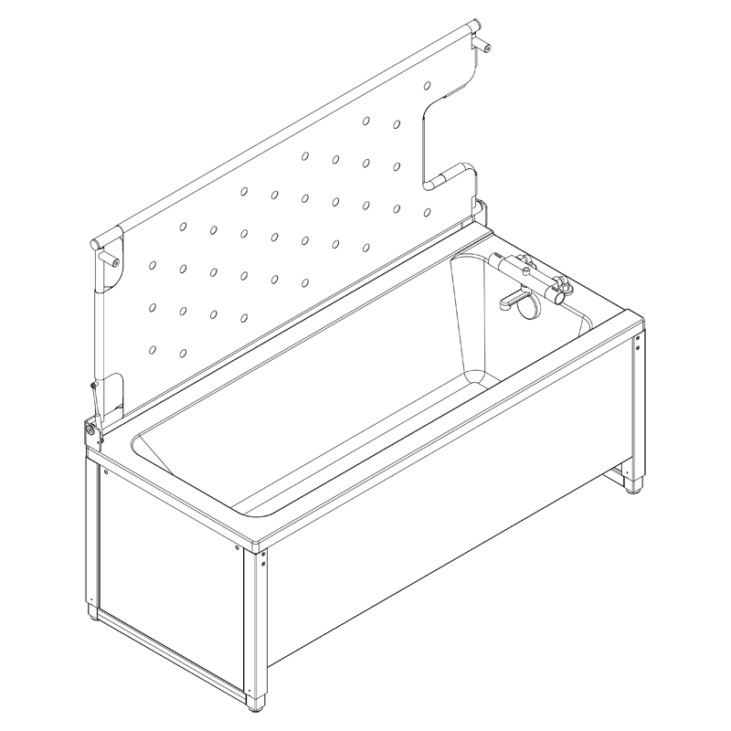 The helpers can also use a mobile lift for helping a person to the bathtub as there is the necessary room under the tub for the lifting device. The rise and fall bathtub is made in a simple design making it easy to clean and giving a high level of hygiene. The bathtub incl. hand shower, mixer tap and flexible plumbing kit.